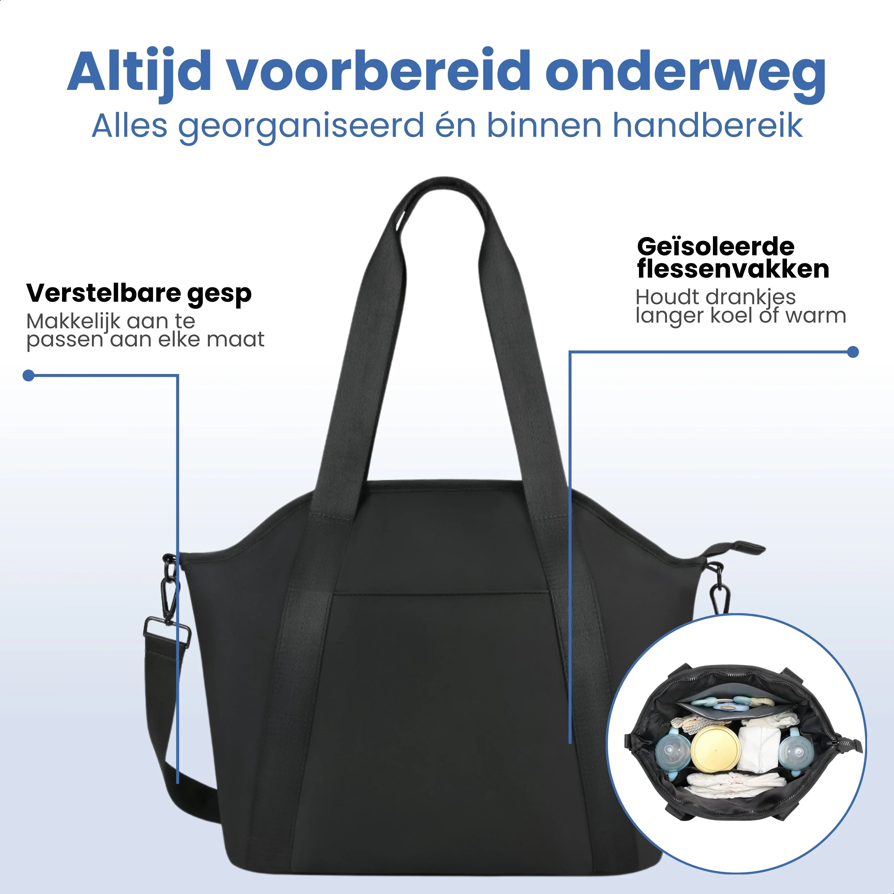 Die Evite Wickeltasche kombiniert Stil, Platz und praktischen Komfort. Alles, was du brauchst, in einer Tasche. Damit du nie etwas vergisst, egal wo du bist.
