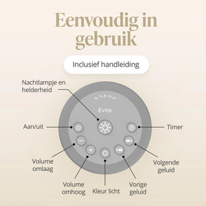 Das Evite Weißes Rauschgerät hilft deinem Baby, schneller und tiefer zu schlafen. Mit 30 beruhigenden Geräuschen, sanftem Nachtlicht und langer Batterielaufzeit. Für zu Hause und unterwegs.