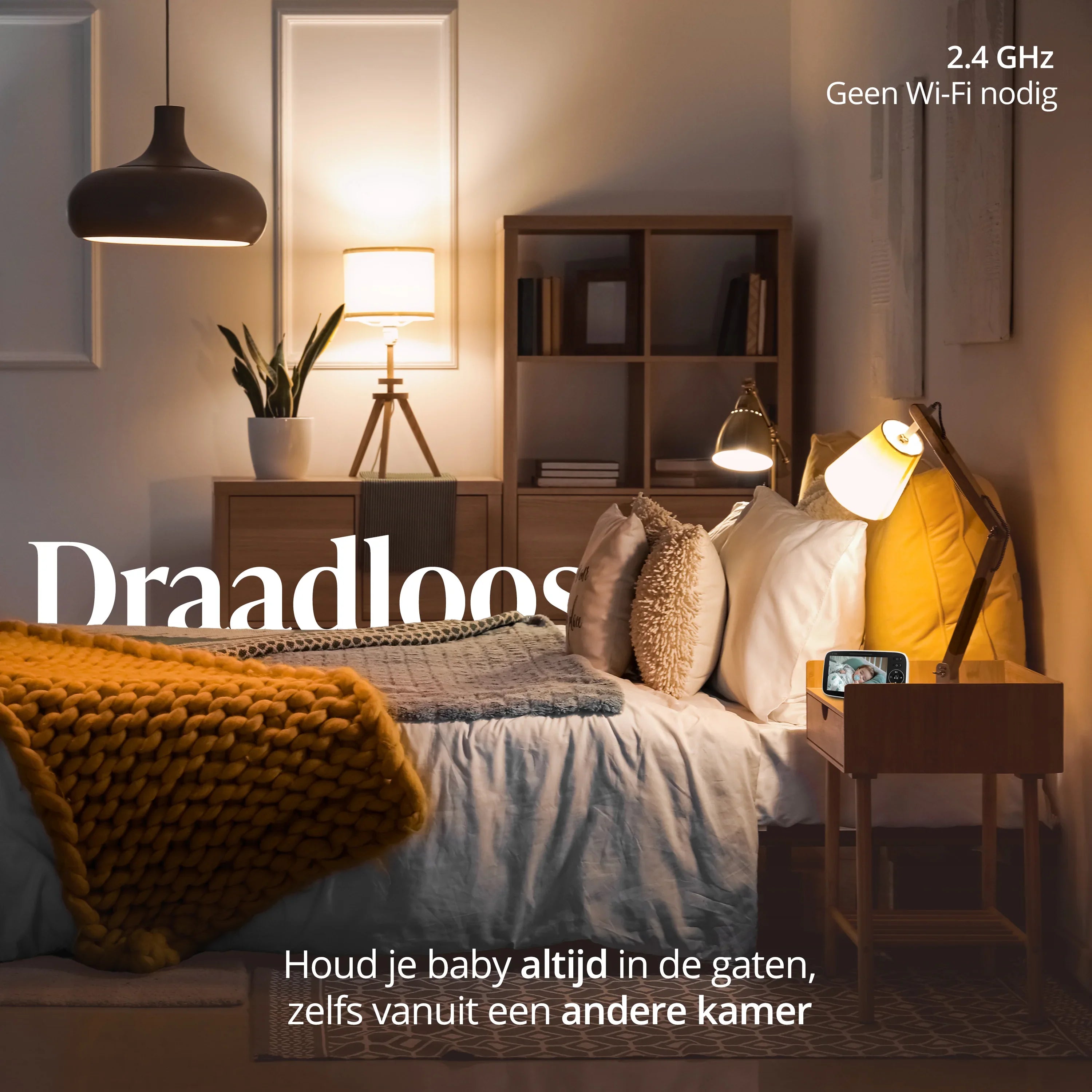 Ja, de Evite Babyfoon heeft een directe digitale verbinding tussen camera en scherm. Je hebt dus geen wifi, app of account nodig.