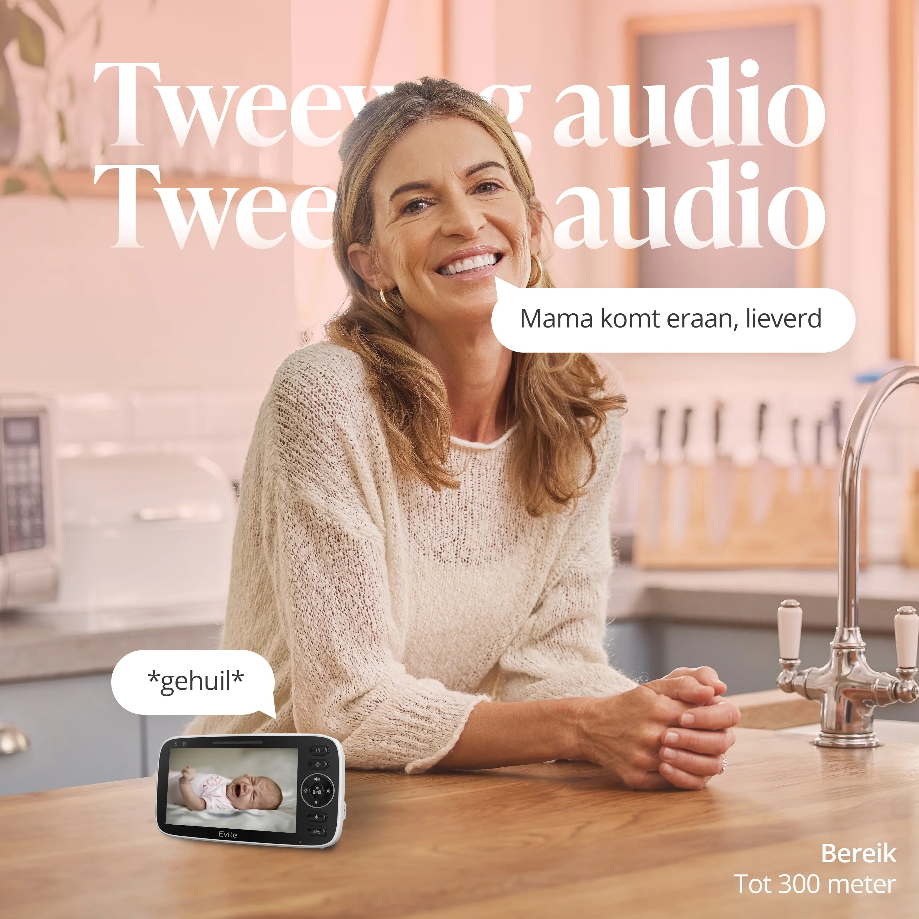 De Evite Babyfoon is er voor ouders die duidelijk beeld, zuiver geluid én directe communicatie willen zonder ingewikkelde setup. Plug en play, stevig bereik en slimme functies. Eenvoudig én geruststellend.