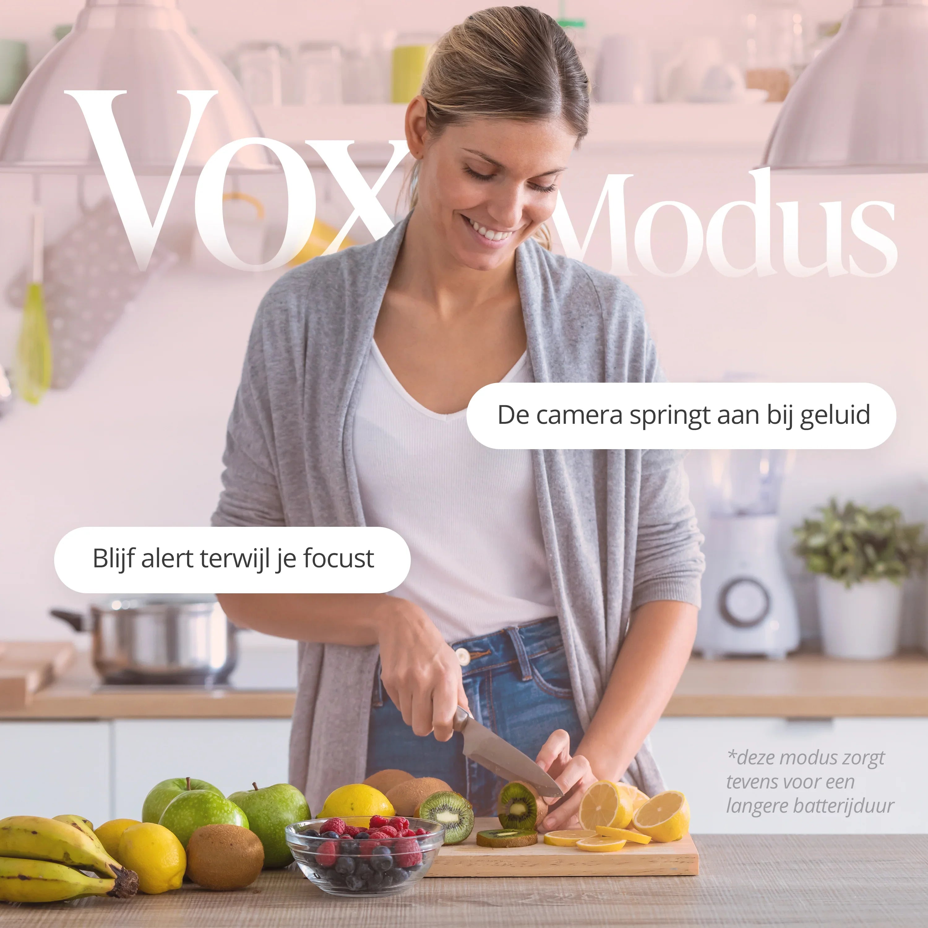 Geluidsfunctie: Helder geluid met terugspreekfunctie en VOX-modus (schakelt automatisch in bij geluid)