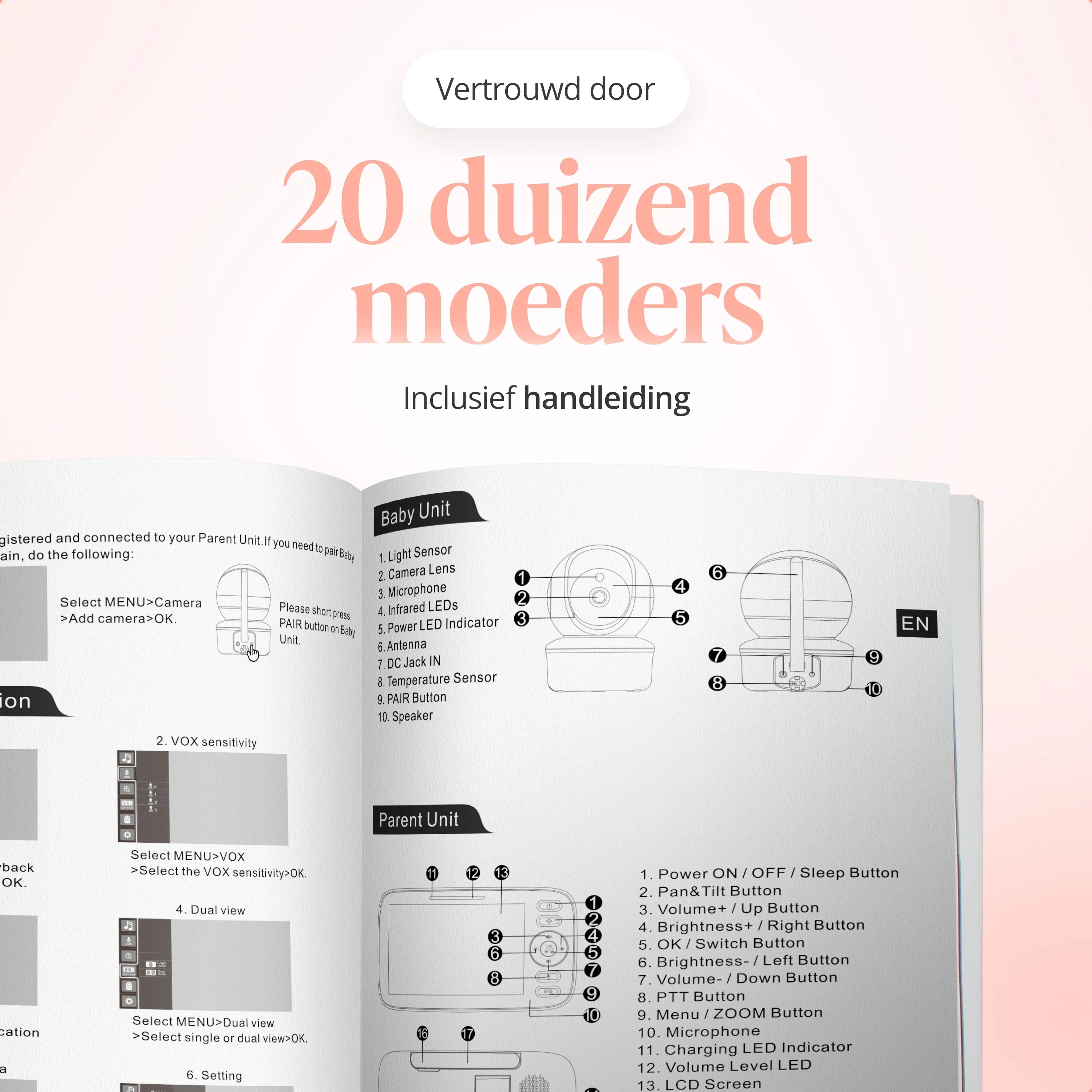 "Ik wilde geen gedoe met apps of wifi, dus deze babyfoon was precies wat ik zocht. Binnen een minuut aangesloten en het beeld is echt verrassend goed. Ook fijn dat ik mijn kindje kan toespreken als hij onrustig is. Echt blij mee!" - Marjanne K