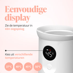 Druk op de aan-knop om te verwarmen. De standaardtemperatuur is 37°C, ideaal voor melk of flesvoeding. Je kunt ook kiezen voor 40°C, 45°C of 50°C.