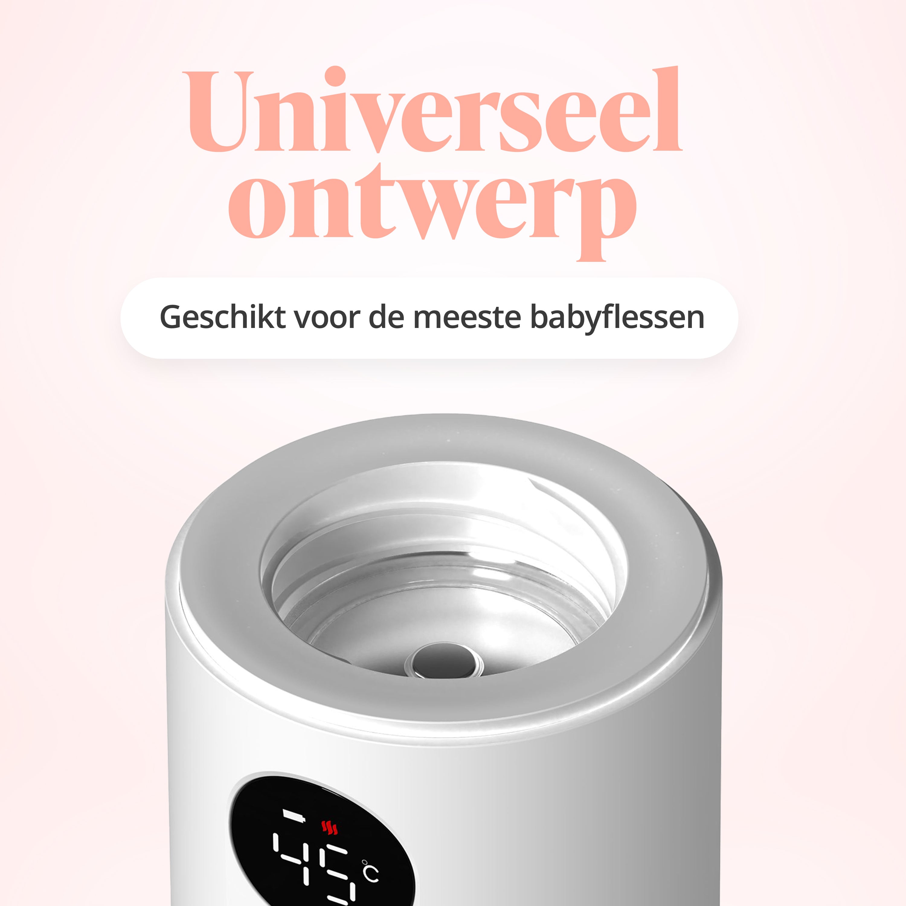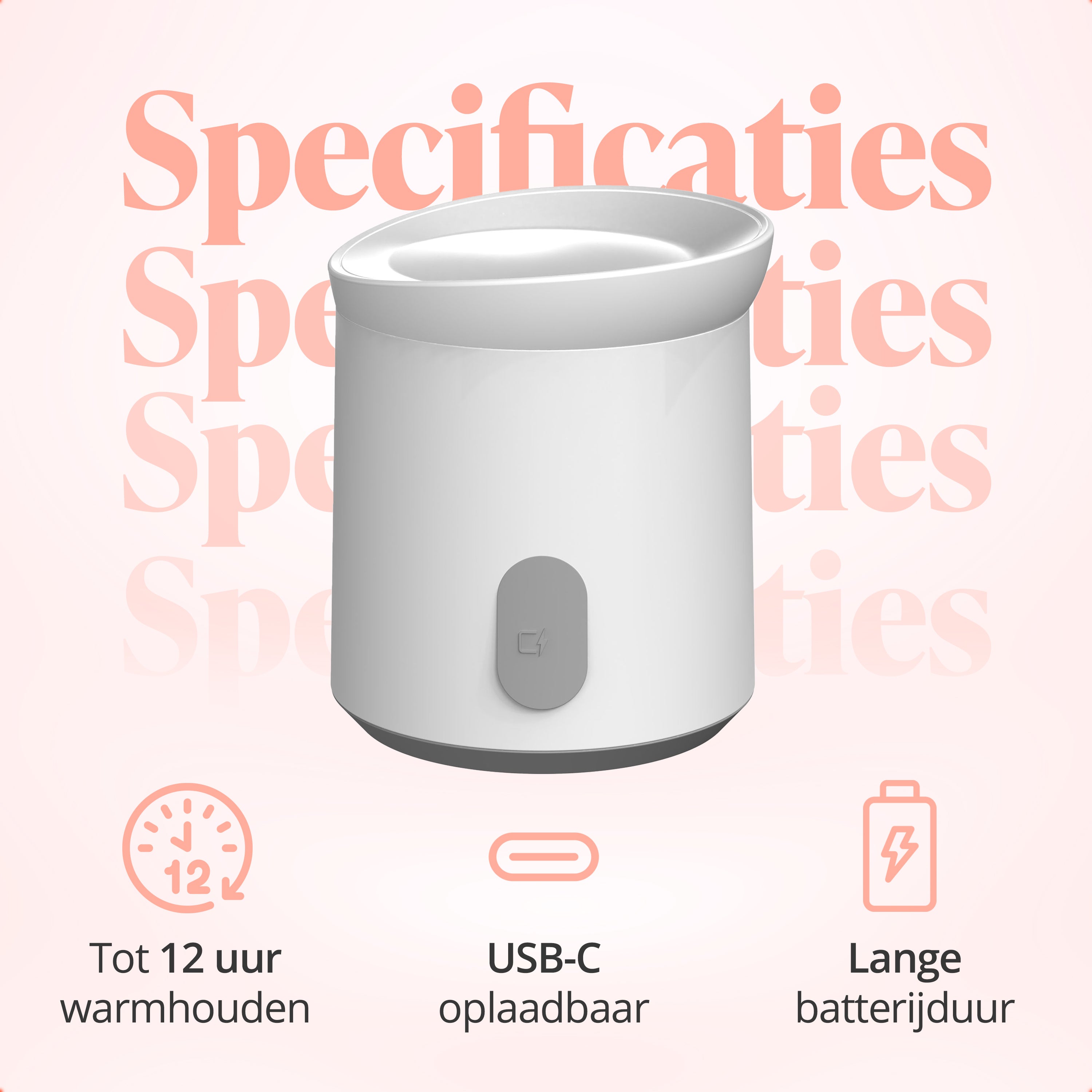 Het stijlvolle, compacte design met een krachtige 11.500 mAh batterij warmt tot wel 14 flesjes op.