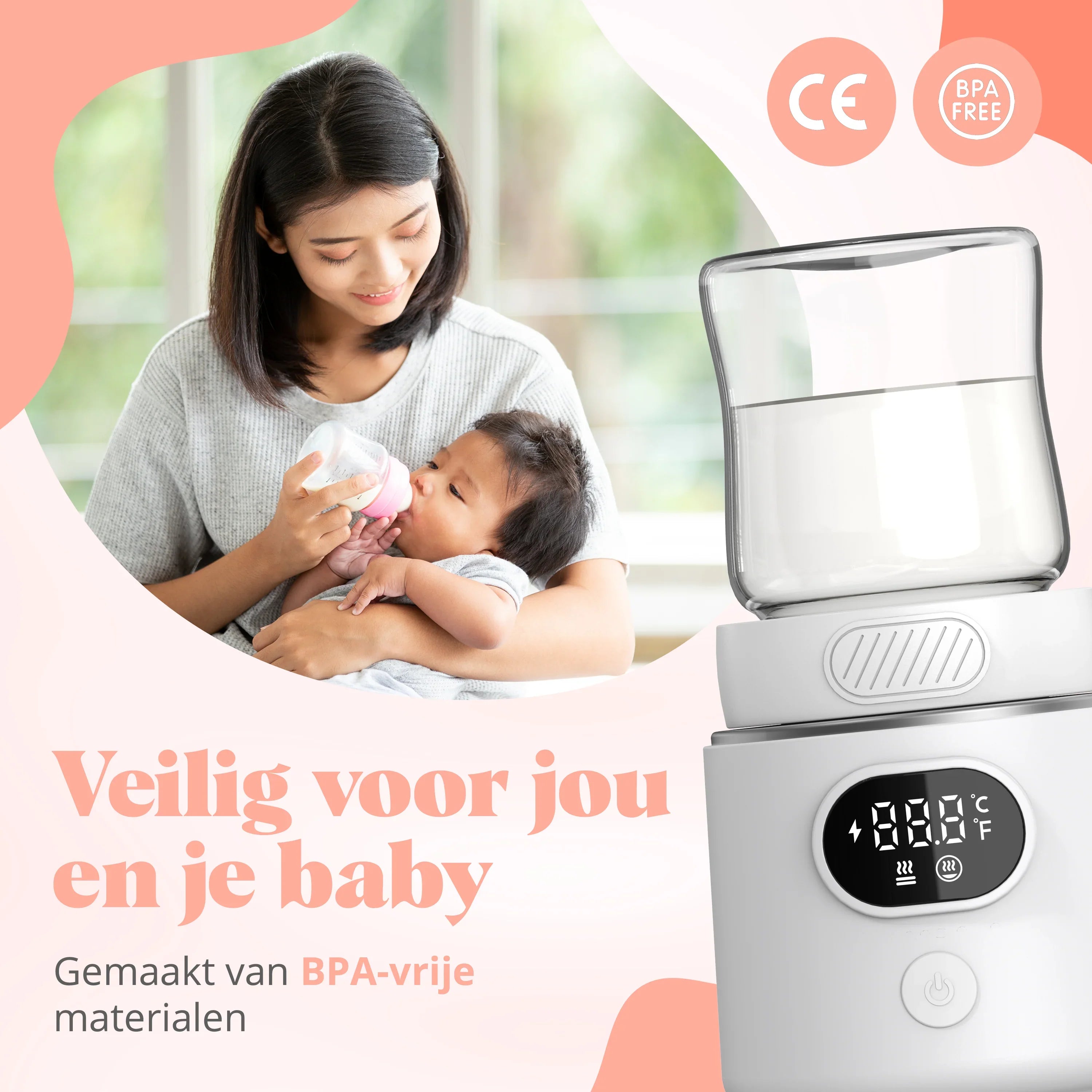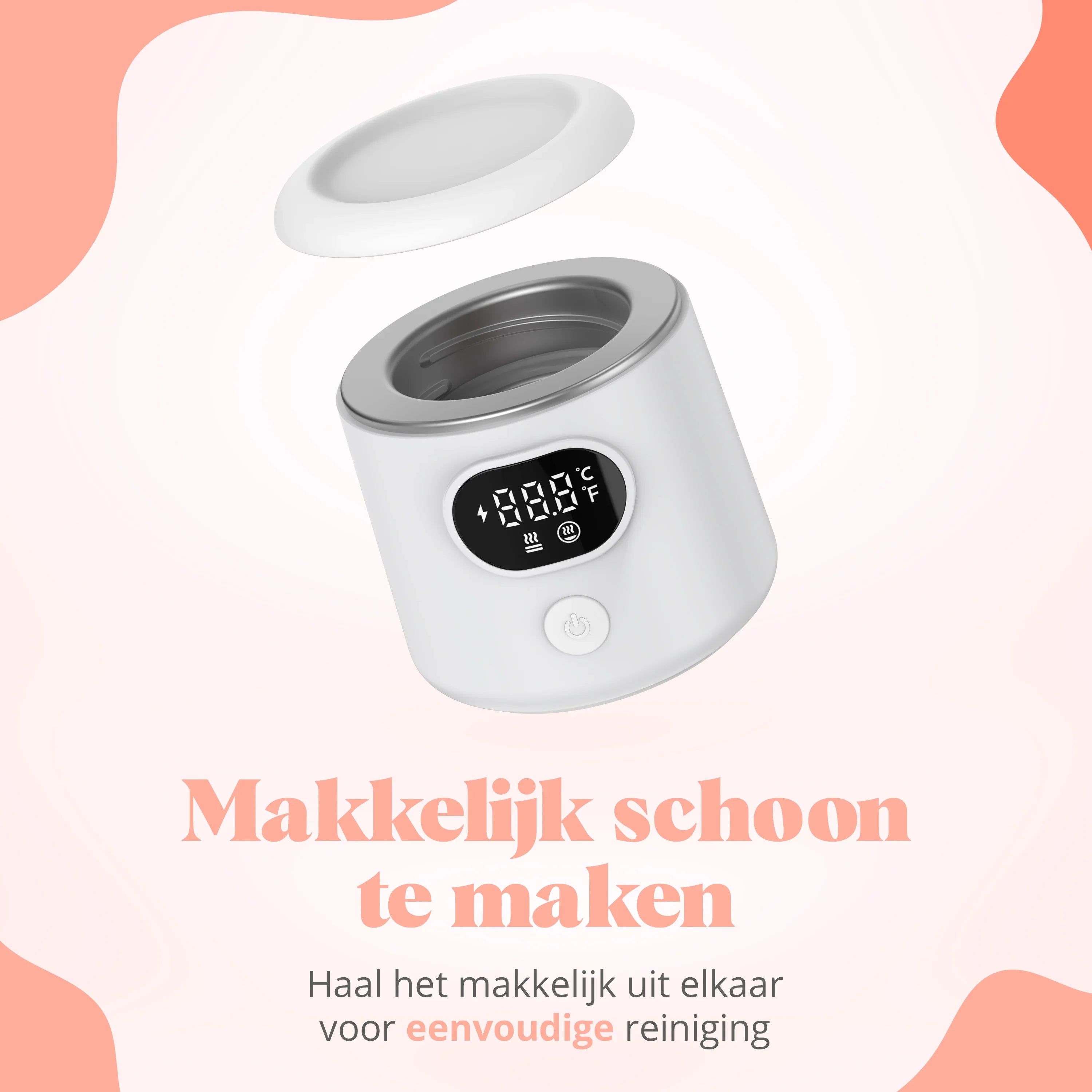 Druk op de aan-knop om te verwarmen. De standaardtemperatuur is 37°C, ideaal voor melk of flesvoeding. Je kunt ook kiezen voor 40°C, 45°C of 50°C.