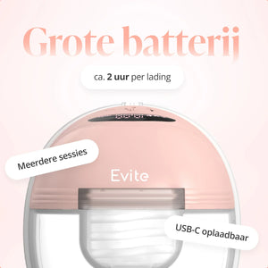 The Evite breast pump is quiet, stylish, and completely hands-free. Designed to naturally support your milk production and provide you with comfort, wherever you are. Easy to clean, soft to wear, and discreet in use, so you can pump without hassle and with all the freedom you deserve.